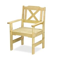 Изысканное садовое кресло. Строгие формы подлокотников и обрешетки спинки идеально подойдут для украшения уютного уголка сада или помещения. Изделие неокрашенное.