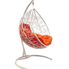 Подвесное кресло КОКОН "КАПЛЯ" ротанг (каркас белый)