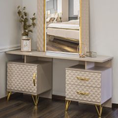 Стол туалетный Lara + Зеркало (бежевый глянец)